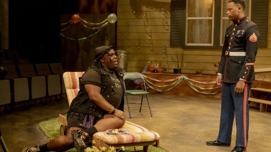 The aptly named Larry is Fat Ham’s parallel to Laertes. Both characters are returning home after time away, but as a marine, Larry was sent away for very different reasons than Laertes was in Hamlet. Suffering from PTSD, Larry struggles with his own identity after his return.